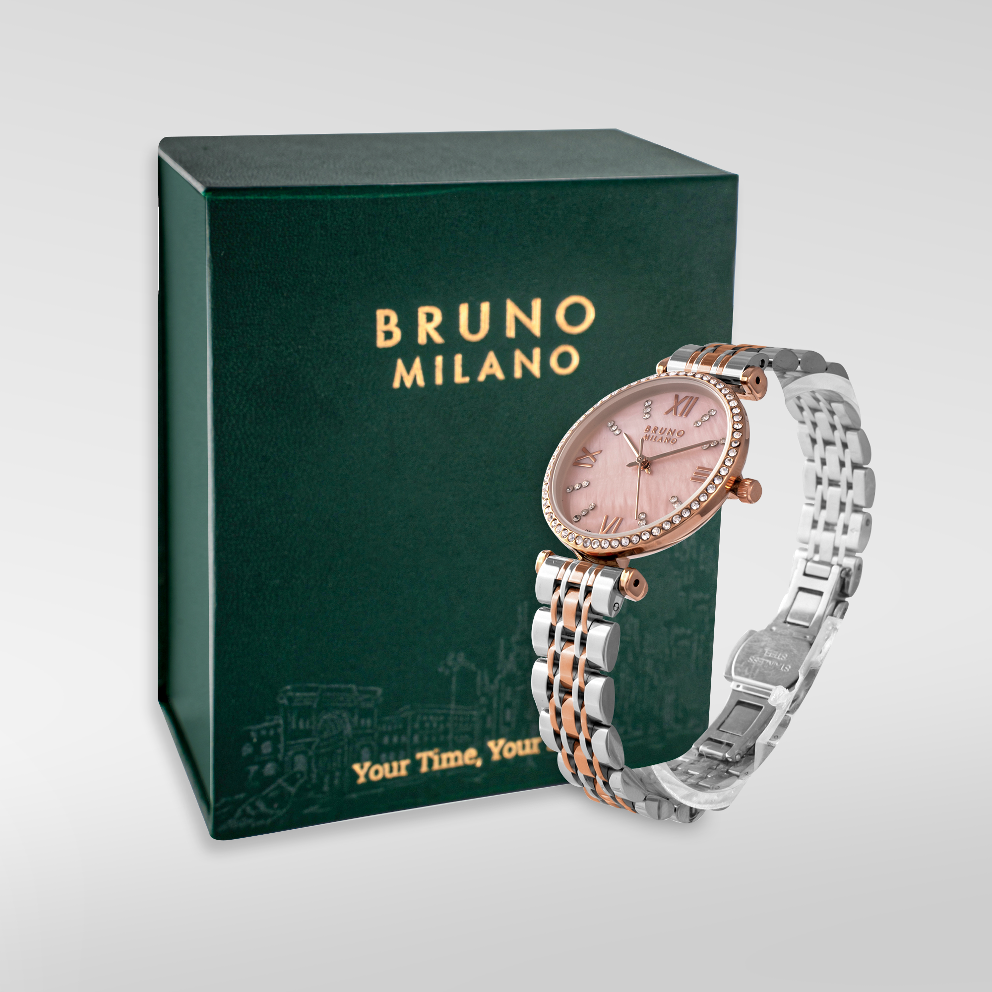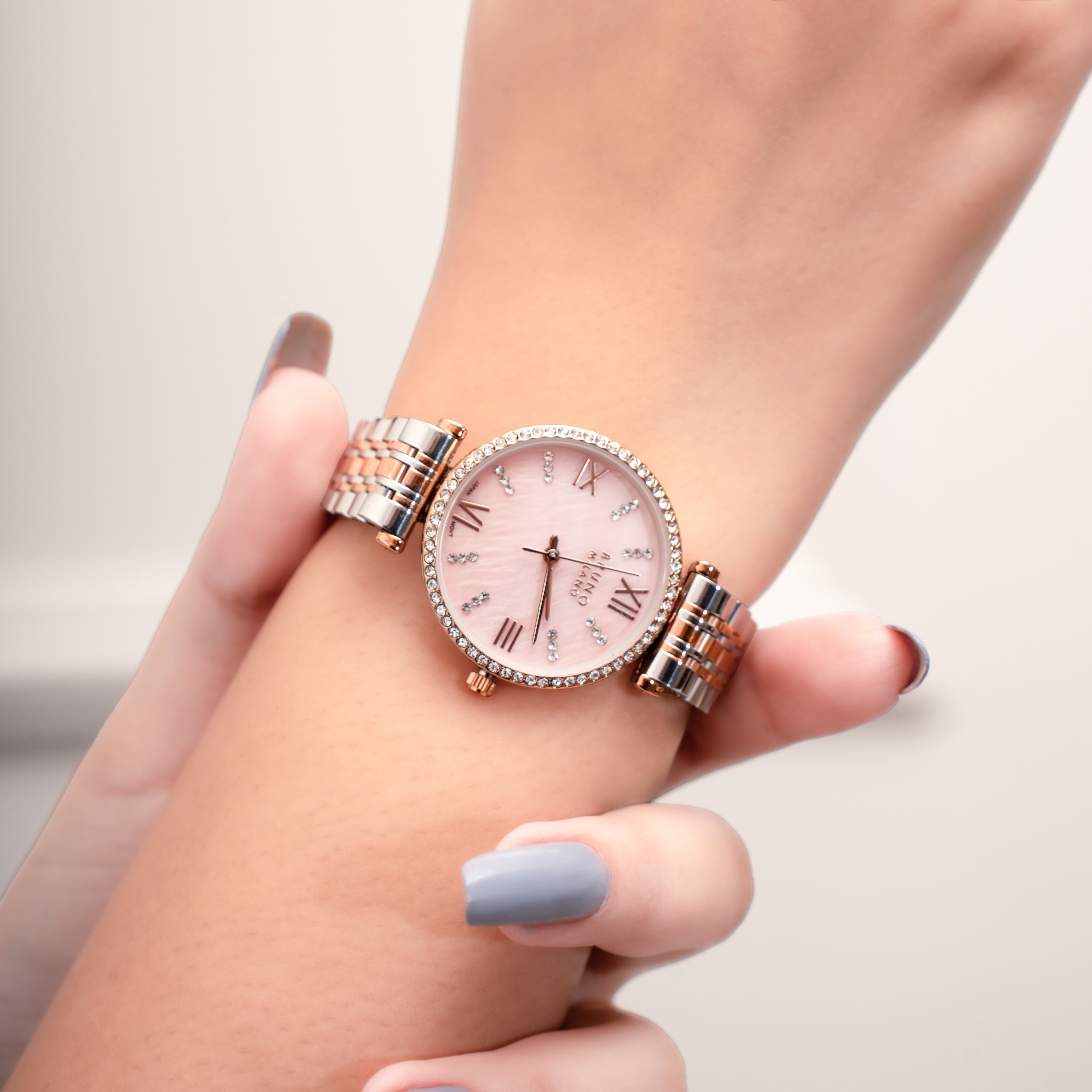 Indulge in pure elegance with the Women’s Diamond-Studded Watch featuring a mesmerizing Mother of Pearl dial. This exquisite timepiece is a true masterpiece that exudes sophistication and luxury at every turn of the wrist.