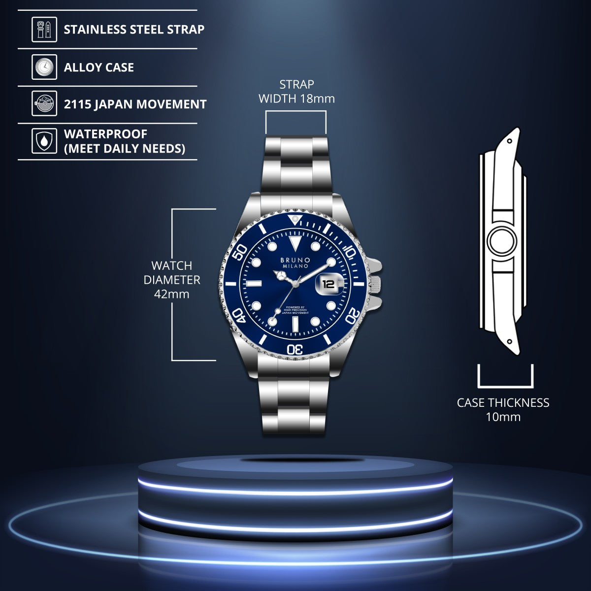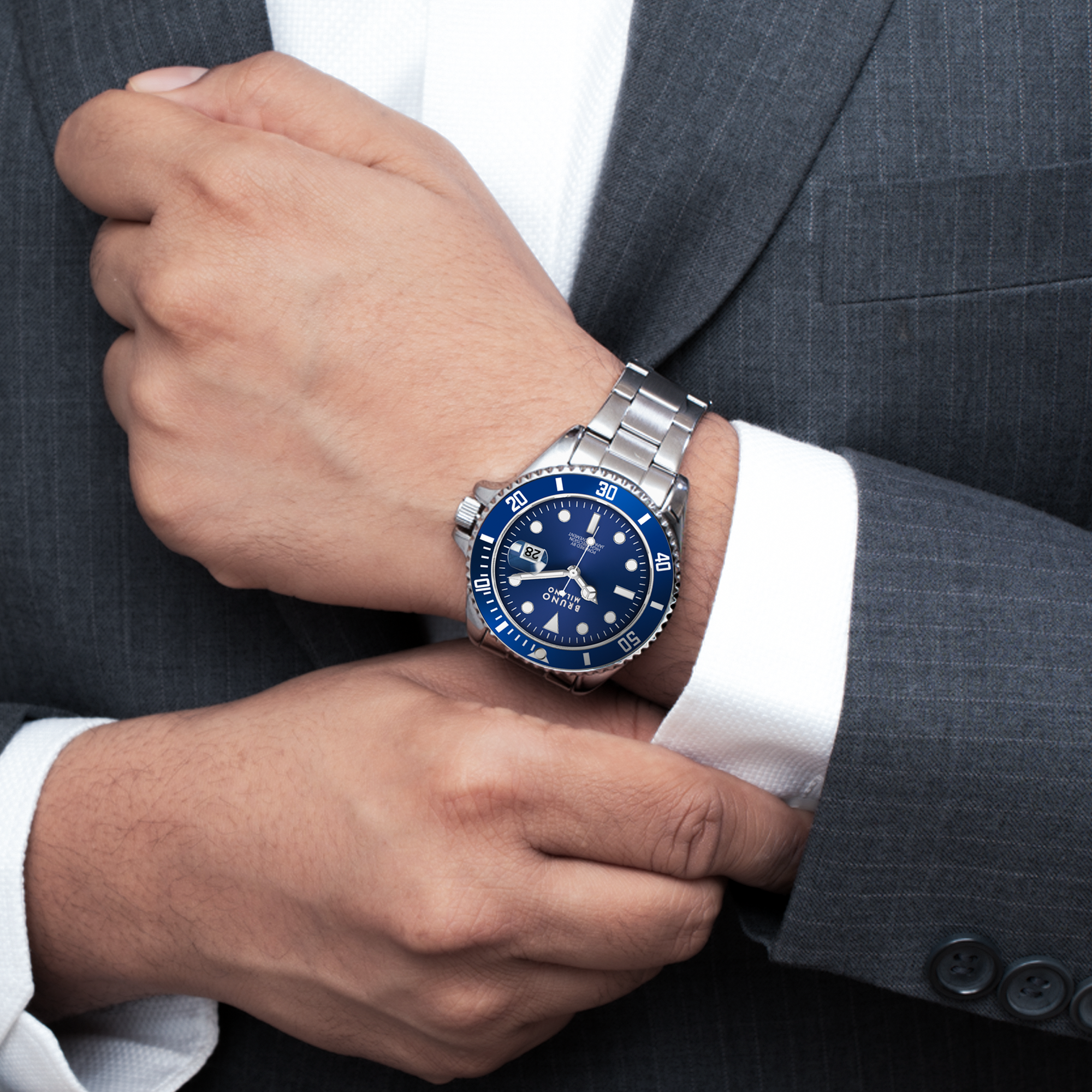 Elevate your style game with our Timeless Sophisticated Men’s Watch with Rotating Ring. A perfect blend of classic design and modern flair, this watch embodies refined elegance. Crafted from high quality stainless steel, and with the added touch of showing the date, this sporty-look watch is the perfect wrist accessory. Be it a formal affair or a casual outing, this watch effortlessly complements every look, making it a must-have in every gentleman’s collection. The butterfly clasp with safety locking mechanism adds another layer of quality to an otherwise peerless piece.